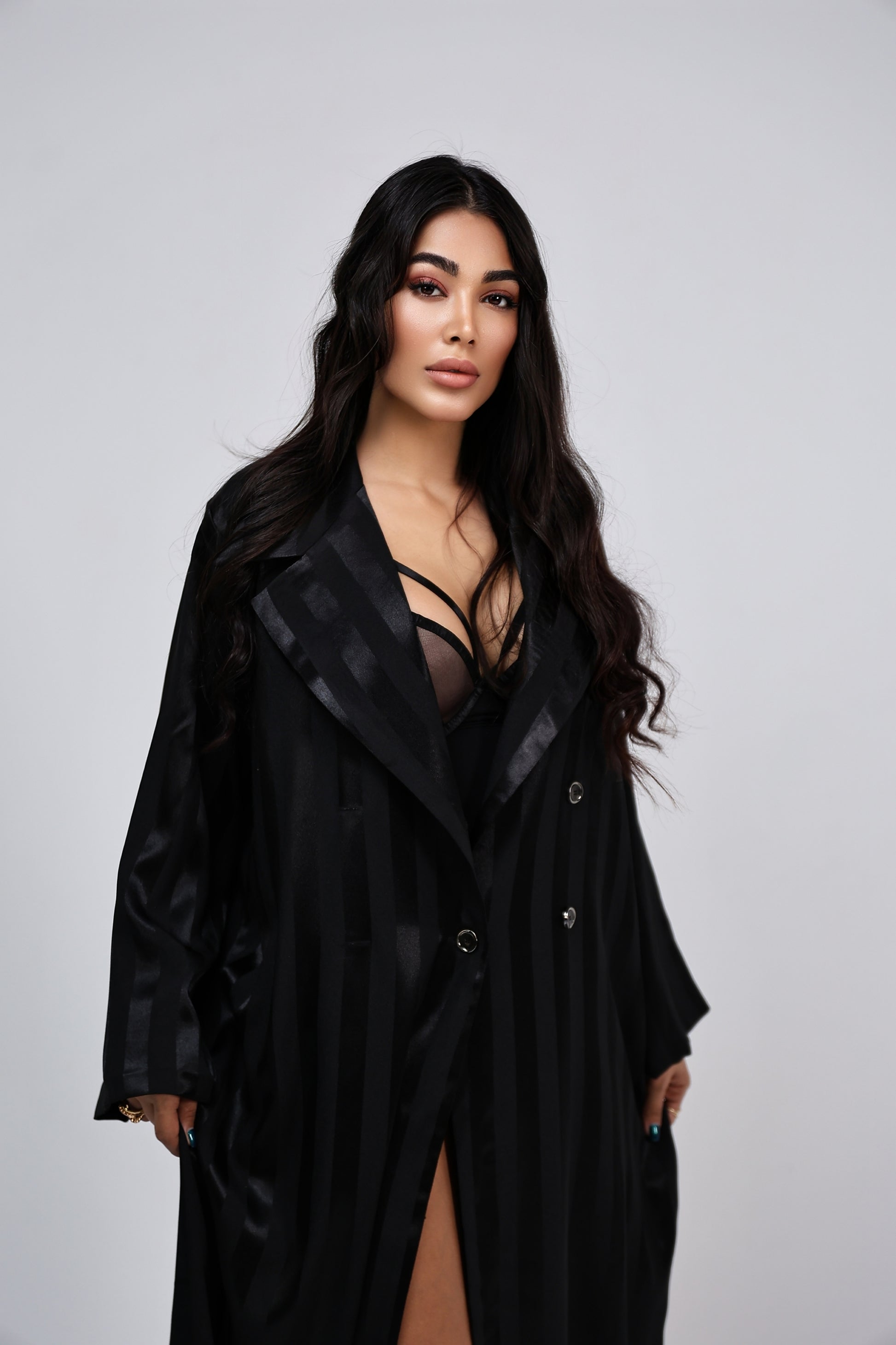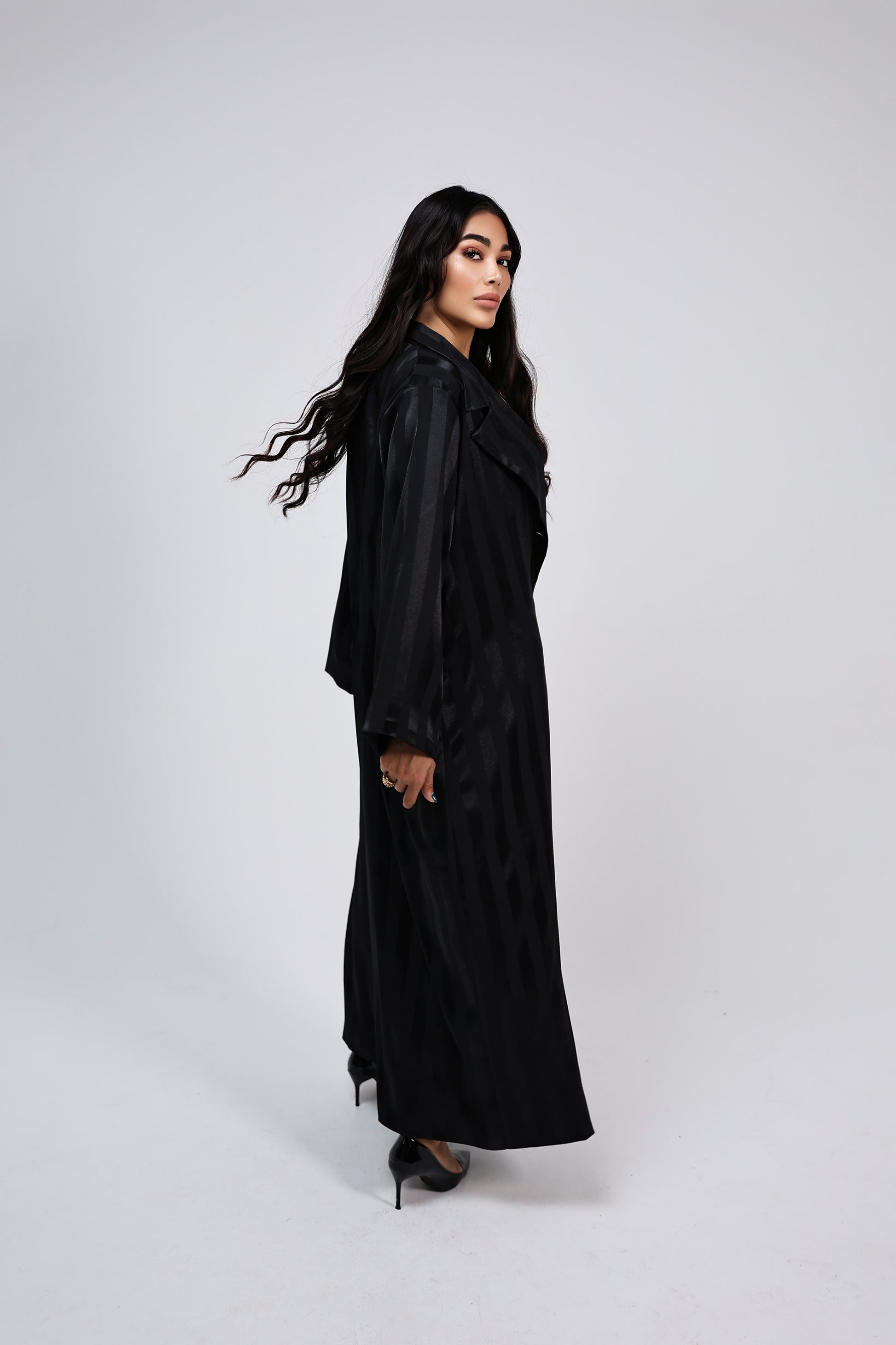 Elevate your wardrobe with the Leydi Luxe Blazer Abaya — where Dubai fashion meets timeless elegance. This signature piece by Leydi Fashion blends the power of a blazer with the flow of an abaya, featuring sleek black-on-black stripes for a bold yet modest look.