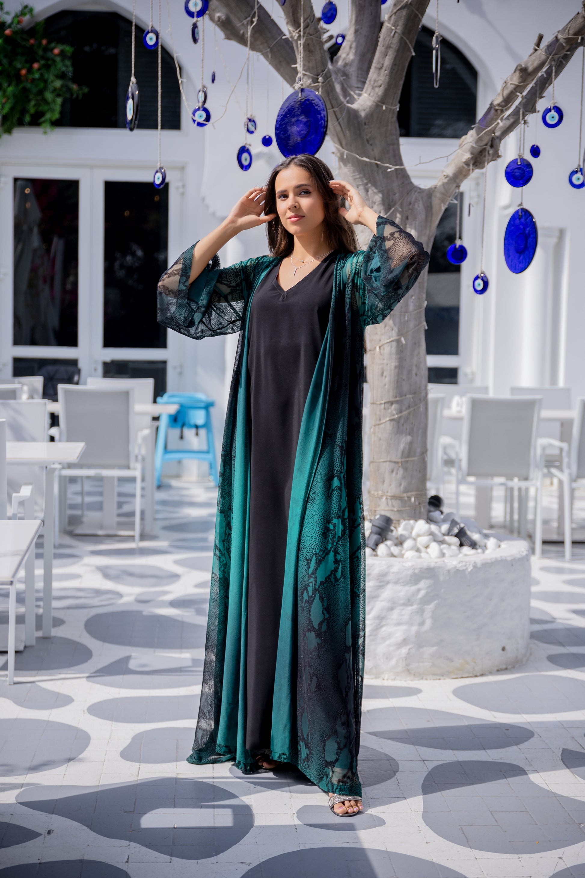 Step into the Year of the Snake with confidence and style! Our Limited Edition Python Print & Turquoise Lace Abaya from Leydi Fashion is the perfect blend of bold and elegance. Limited pieces available.